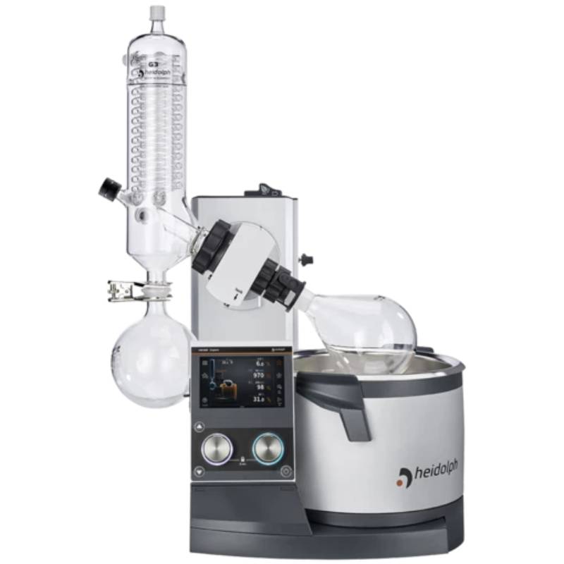 蒸發(fā)瓶和接收瓶受透明、防霧 PMMA 防護(hù)罩保護(hù),有效提高安全性。水/油兩用加熱鍋可用水或浴液,最高加熱溫度可達(dá) 180 °C。集成自動(dòng)補(bǔ)液系統(tǒng)、溢流口及底部放液閥。EASY LOCK可實(shí)現(xiàn)單人更換蒸發(fā)瓶。